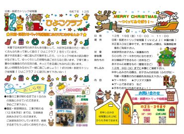 クリスマスケーキのデコレーションを親子で楽しんでみませんか?他にもクリスマス製作やゲームタイム、本園自慢の手作りおやつも味わっていただきますよ!ぜひご参加くださいヽ(^o^)丿
